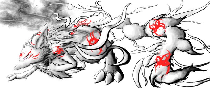 0 1 #イラスト 昨日の墨風狐の影付きです 22/06/15 18:53