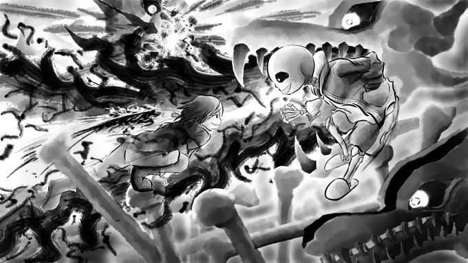 0 3 #イラスト 墨絵風でundertale、Gルートサンズ戦です。 do you wanna have a bad time? 22/07/14 18:46