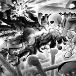 #イラスト 墨絵風でundertale、Gルートサンズ戦です。 do you wanna have a bad time?