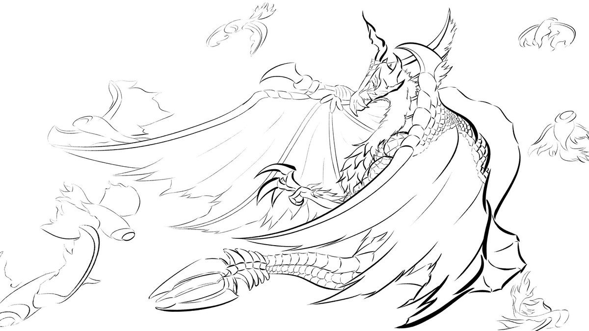 1 7 #イラスト 最近のモンハンやってないせいで正確に描けてるか判りませんがメルゼナです。 塗りはまた後日。 22/07/19 18:53