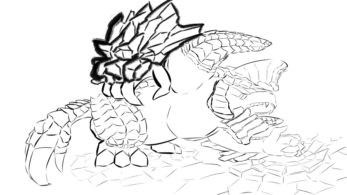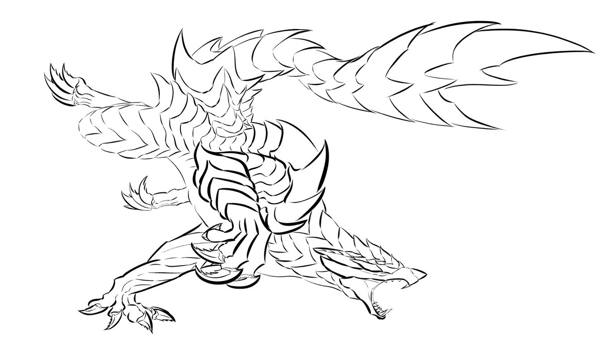 #イラスト 最近のモンハンやってないせいで正確に描けてるか判りませんがメルゼナです。 塗りはまた後日。