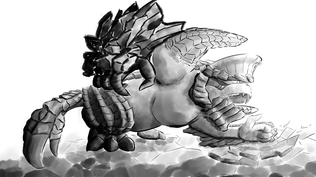 #イラスト モンスターハンターよりガランゴルムです。 ここからどう塗ってやりましょうか。 また後日。