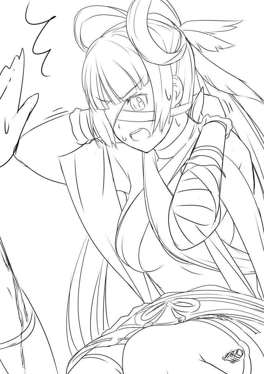 誤算だ... 身体もけっこう描いたのに 袖でほとんど見えなくなってしまった... (しかも時間足りない) #天華百剣版深夜の真剣お絵描き60分一本勝負