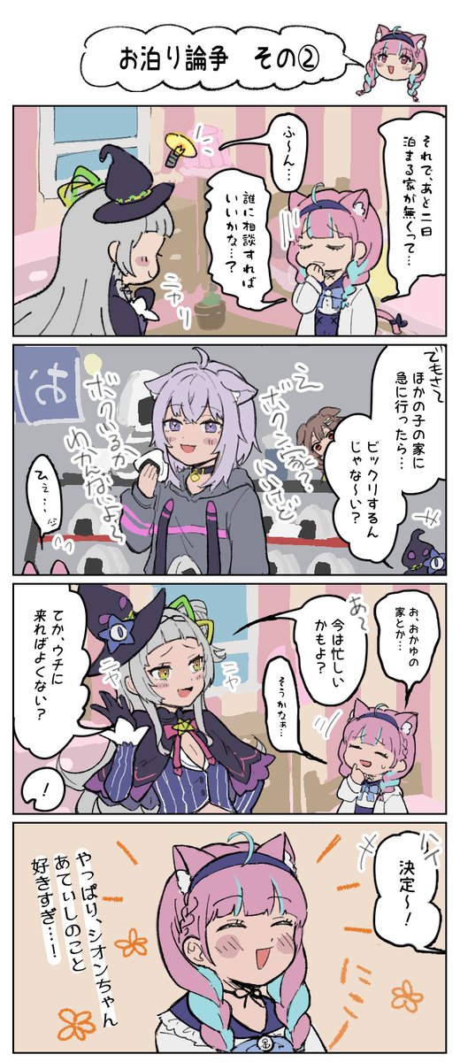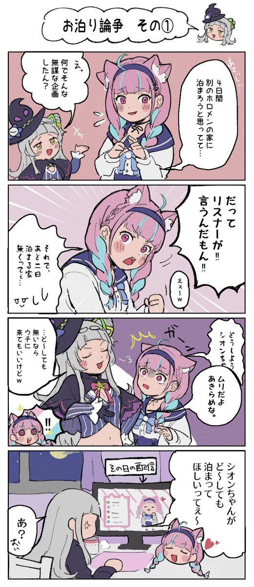 あくシオ かなり前の配信の4コマになります。 可愛かったから…今更投稿…続きます 見づらかったら、ごめんなさい #あくあーと #シオンの書物