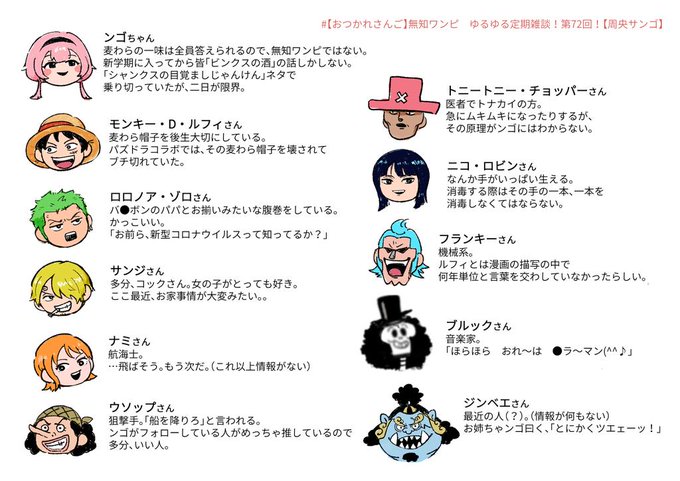 175 748 #描くンゴ 無知ワンピの ンゴと麦わらの一味の人たち 22/09/10 14:14