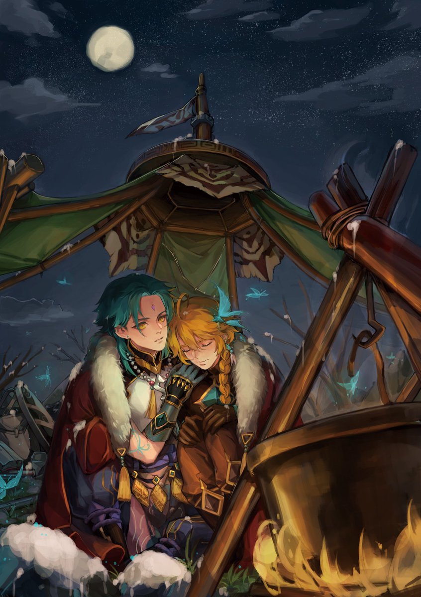 Illustration for @SunKissedAether (c) 2022 Thank you for giving me the opportunity to draw this soft date. #原神 #XiaoAether
