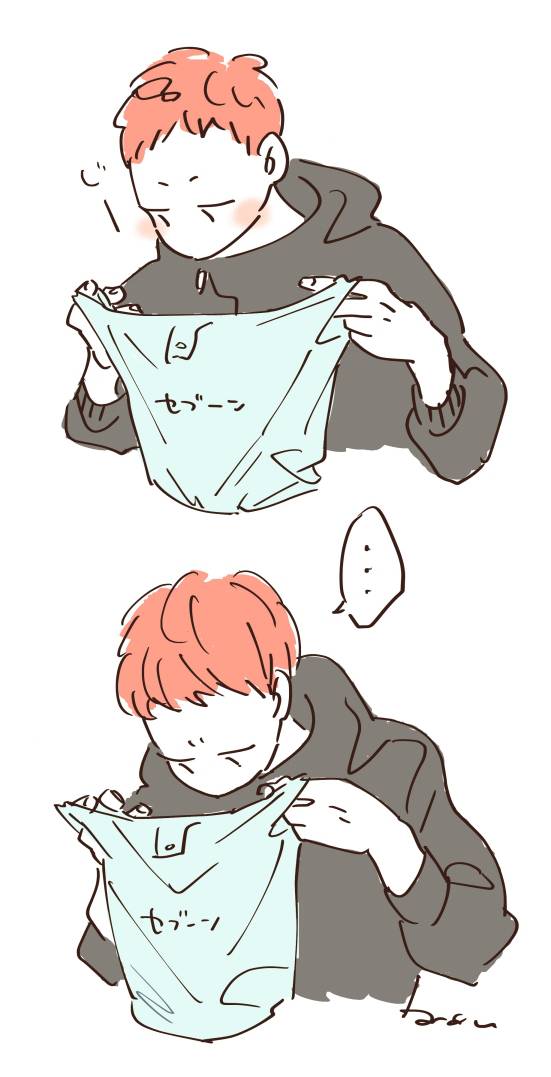 26 180 セブーンに気付いてくださった方がいたので数年前に描いたどのコンビニシューから食べるか悩む花くん 22/02/08 20:51