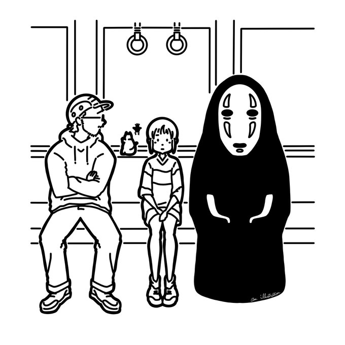 0 8 ✒︎#お邪魔しますシリーズ ねぇ、この電車ってどこいくの? 僕も一緒にいっていい? え?いいって?ありがとう! じゃぁお邪魔しまーす! #illust #illustration #Illustrator #artwork #lineart #イラスト #イラストレーター #ラインアート #挿絵 #ジブリ #ghibli #千と千尋の神隠し #カオナシ 22/11/28 08:10