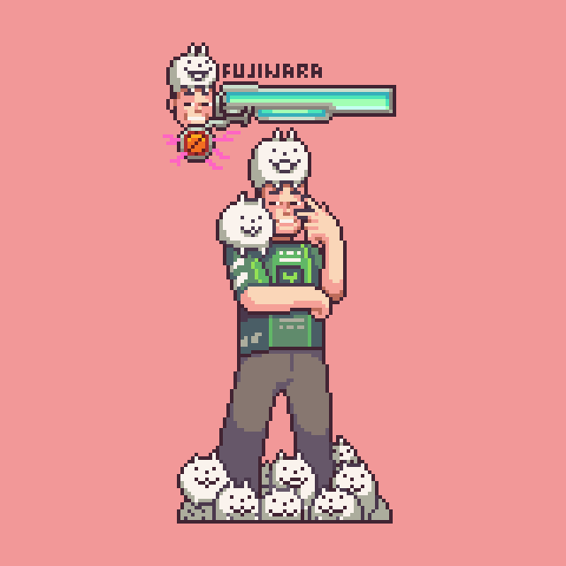 The last but not least! @FujiwaraLunasa, also the programmer of @coffeetalk_game! The king of fighting game in the office, and a Battle Cats lover. #Artof2019 #pixelart #ドット絵 #BBTAG #battlecats