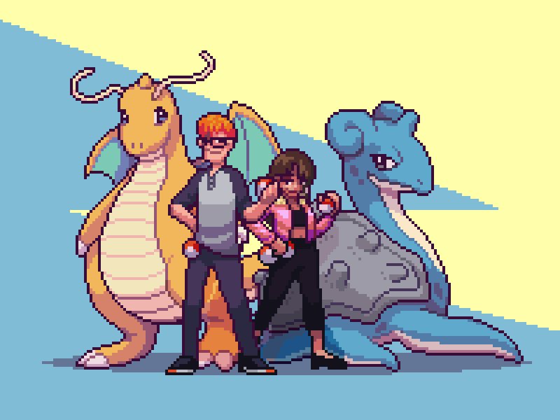 GOTTA CATCH 'EM ALL GOTTA CATCH 'EM ALL Pokemon trainer couple commission! #pixelart #ドット絵 #PokemonGO #pokemon #anime #gameart #Commission #freelance #artistsontwitter