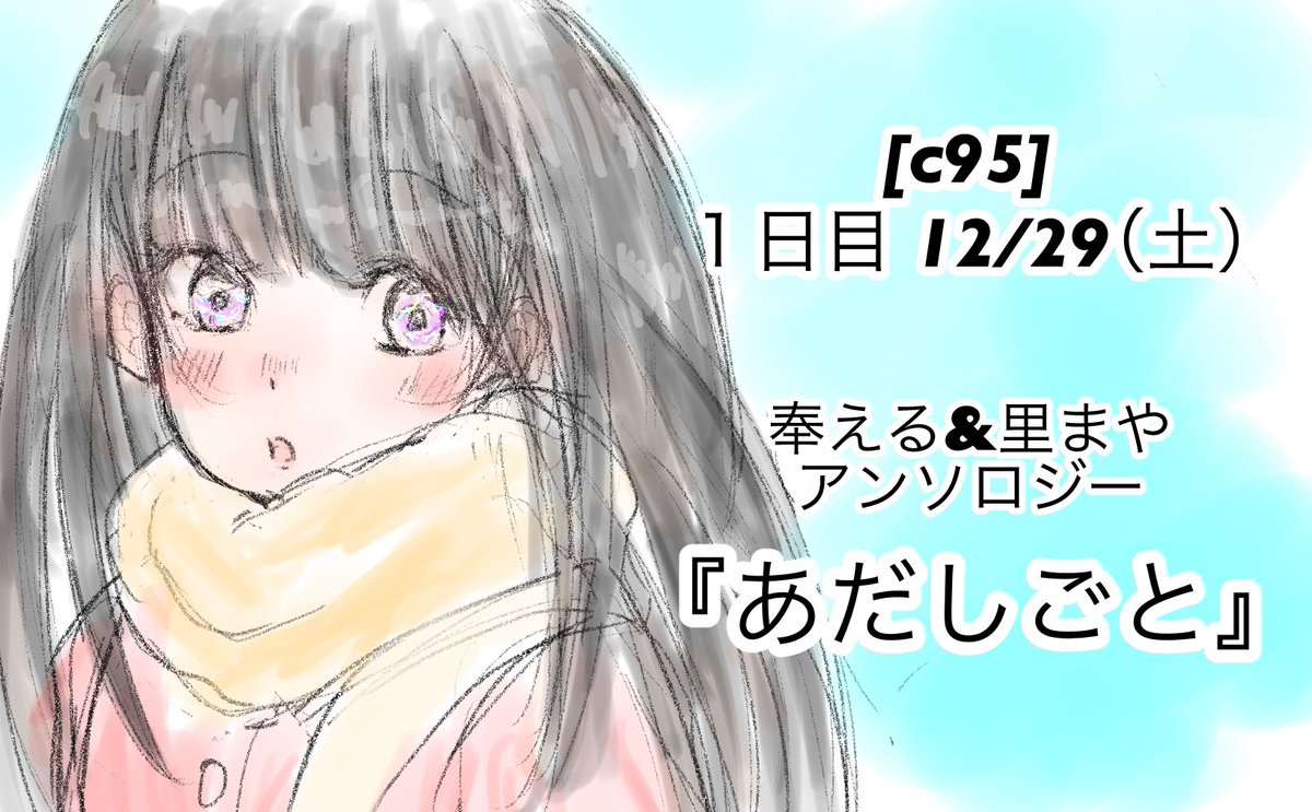 あらためまして、脱省エネ推進委員会さまの奉える&里まやアンソロジー「あだしごと」に小説で参加させて頂いております。よろしくお願いします! c95 1日目 12/29(土) 東マ-01a