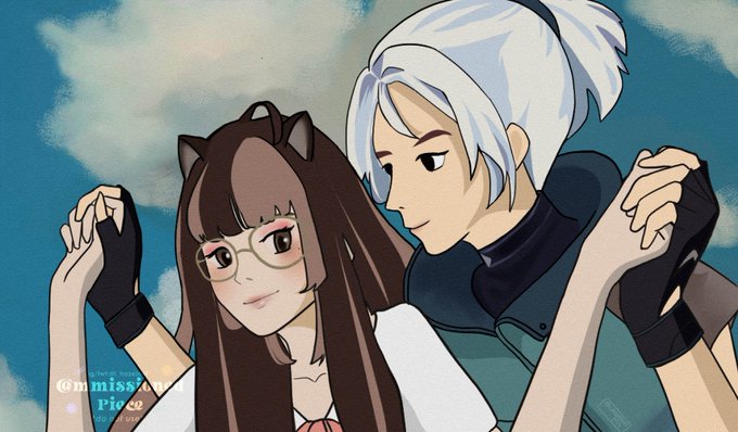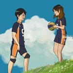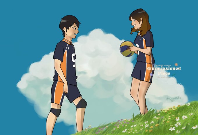 ‡ commissioned piece for Anjeh, the guy is kageyama btw! it's rare to see him smiling tho 😆 [ #ghibliredraw #commissionsopen ]