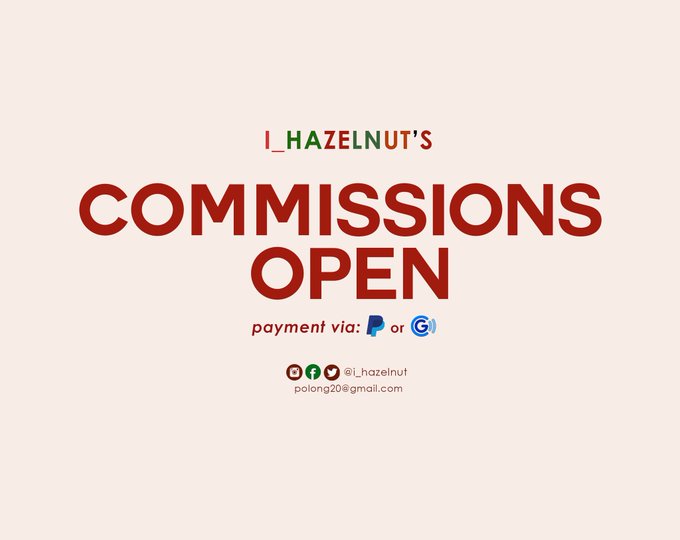 Commissions OPEN! ✍️ ▹Directory: ihazelnut.carrd.co ▹Queue: trello.com/b/l9yYWLM8/com…… ▹Gmail: polong20@gmail.com Likes and rts appreciated! #commissionsopen #ArtistOfSEA #artph