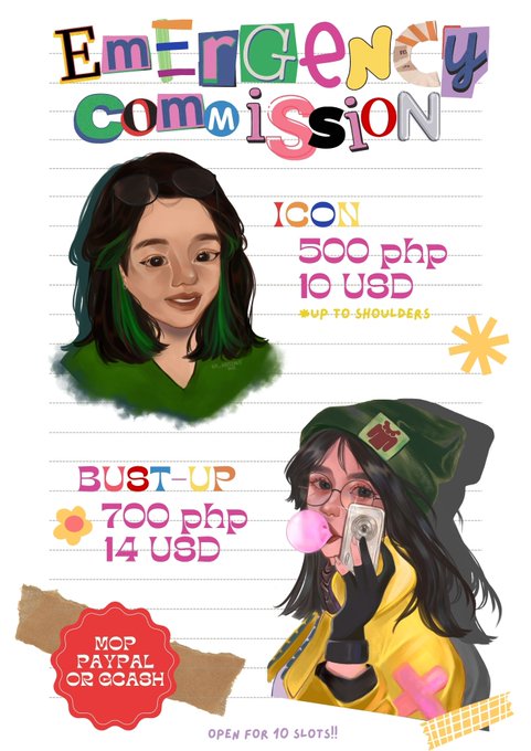 urgent commissions open!! ⭐️ open for 10 slots ⭐️ likes and rts are greatly appreciated #artph #commissionsopen