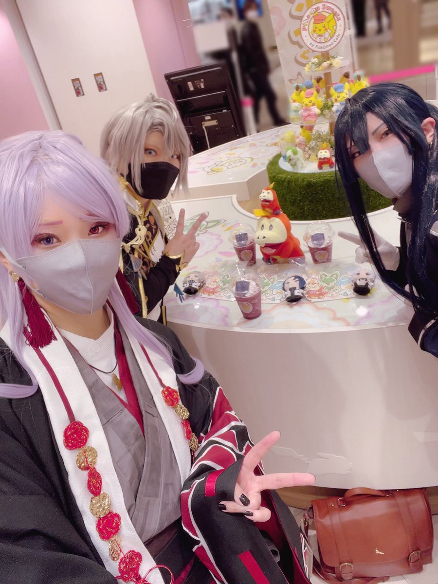 暑かったからほぼ室内だったけどお揃い衣装3人で今日着れて良かった😭!! たくさん写メ撮った😊 #アコスタ池袋