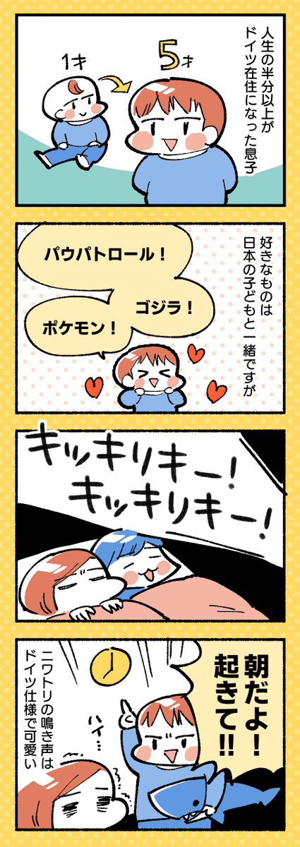 何が嬉しいって、父母日本人家庭で育ってる4歳児がドイツの現地保育園に楽しく通ってくれてるだけでありがたいのに、 そこで友達作って楽しくおしゃべりしてるって事実で毎日泣ける #育児絵日記