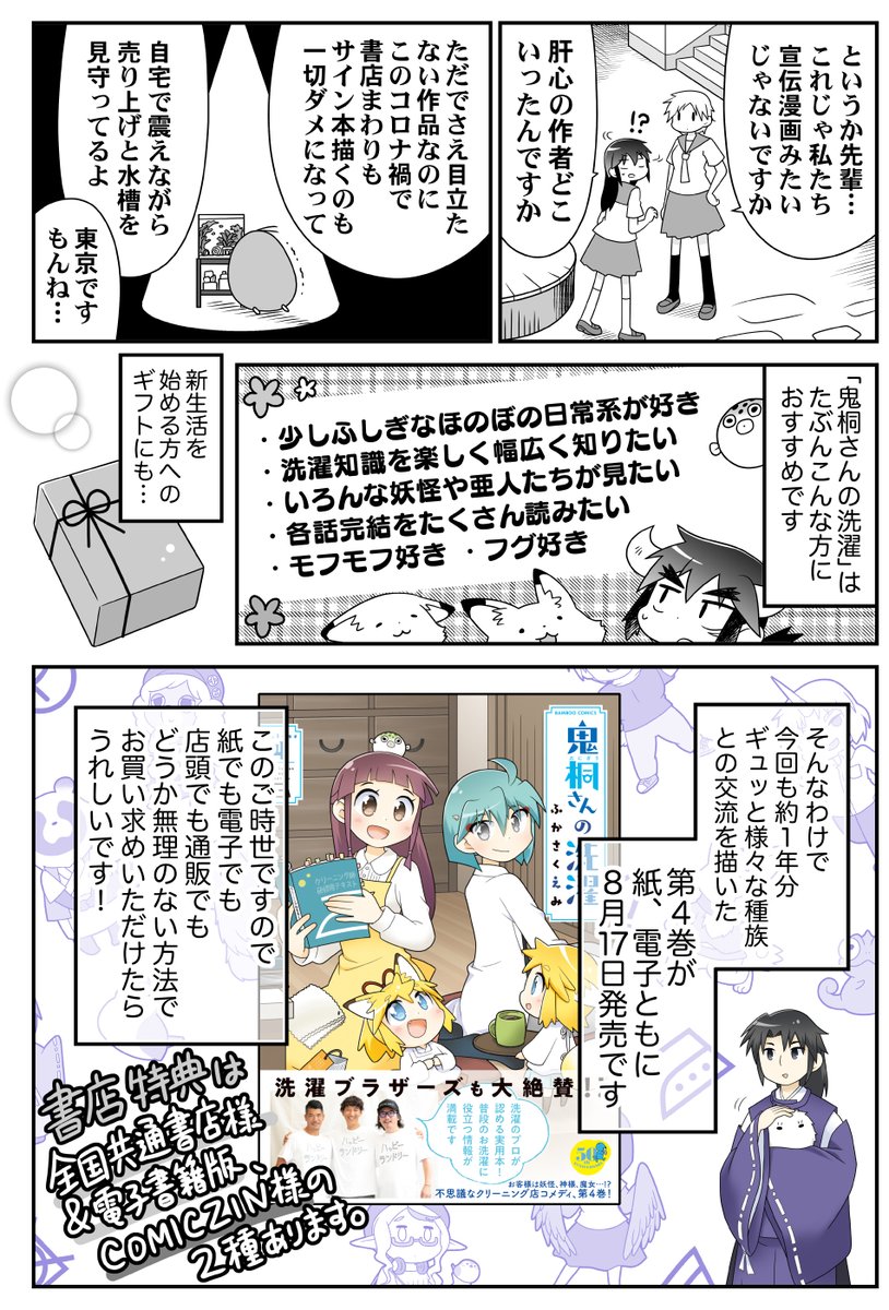 「鬼桐さんの洗濯」電子版が各電子書籍にて今月の16日くらいまで1巻が87%オフ、2〜5巻が半額とお安くなってるようです。この機会によろしければ。4巻のときのだけど紹介漫画も再掲しますね。 amzn.to/3LHPdHw