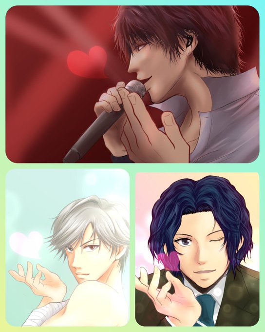 1 14 今日はキスの日と聞きましたので過去絵いじって彼らに投げキッスさせてみました。 皆様推しからの投げキッス💋でどうぞ被弾してください← 20/05/23 15:21