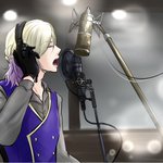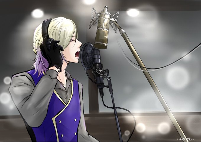 #ツイステファンアート 5章見直して👑様の歌声がホントに良すぎてレコーディングで美声を響かせる👑様を描いてみました… 歌いやすい様に上着やネクタイは外してそうだなぁと☺️ (🎤の位置よくわからなかったんで雰囲気で見てください)