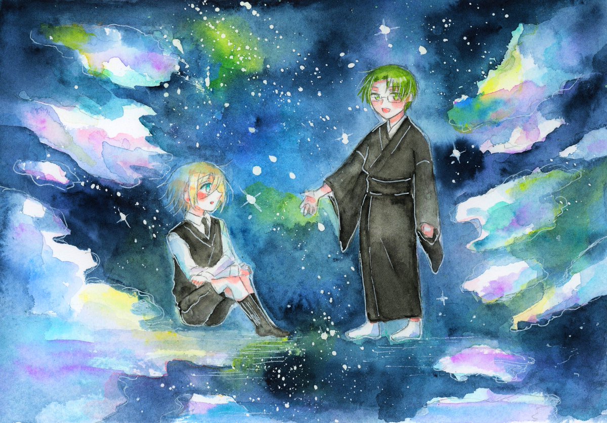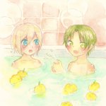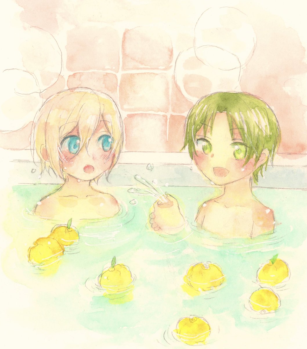 昨日は冬至だったので、ほたてさんが書かれたかわいすぎる幼少期英敬小説を受けて柚子湯に入る幼少期英敬を勝手に描かせていただきました(掲載許可いただいてます) 作中のあとふたりで柚子湯に入ってるイメージです🍊 twitter.com/httkhm/status/…