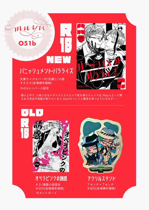 1/8 インテ お品書き | 伊知 pixiv.net/artworks/10429… お品書きあげました〜!!!!新刊に加えて既刊ひとつとアクスタ持っていきます〜〜間に合えば無配でシールつけたいなってかんじです💪