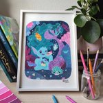 #Mermay 06 - Beluga. In other occasions they are the ones who convince animals to go out of their routine and contemplate the stars 🌟🌌 This illustration is available, +info on Instagram 😉🌟 #mermay2022 #mermaychallenge