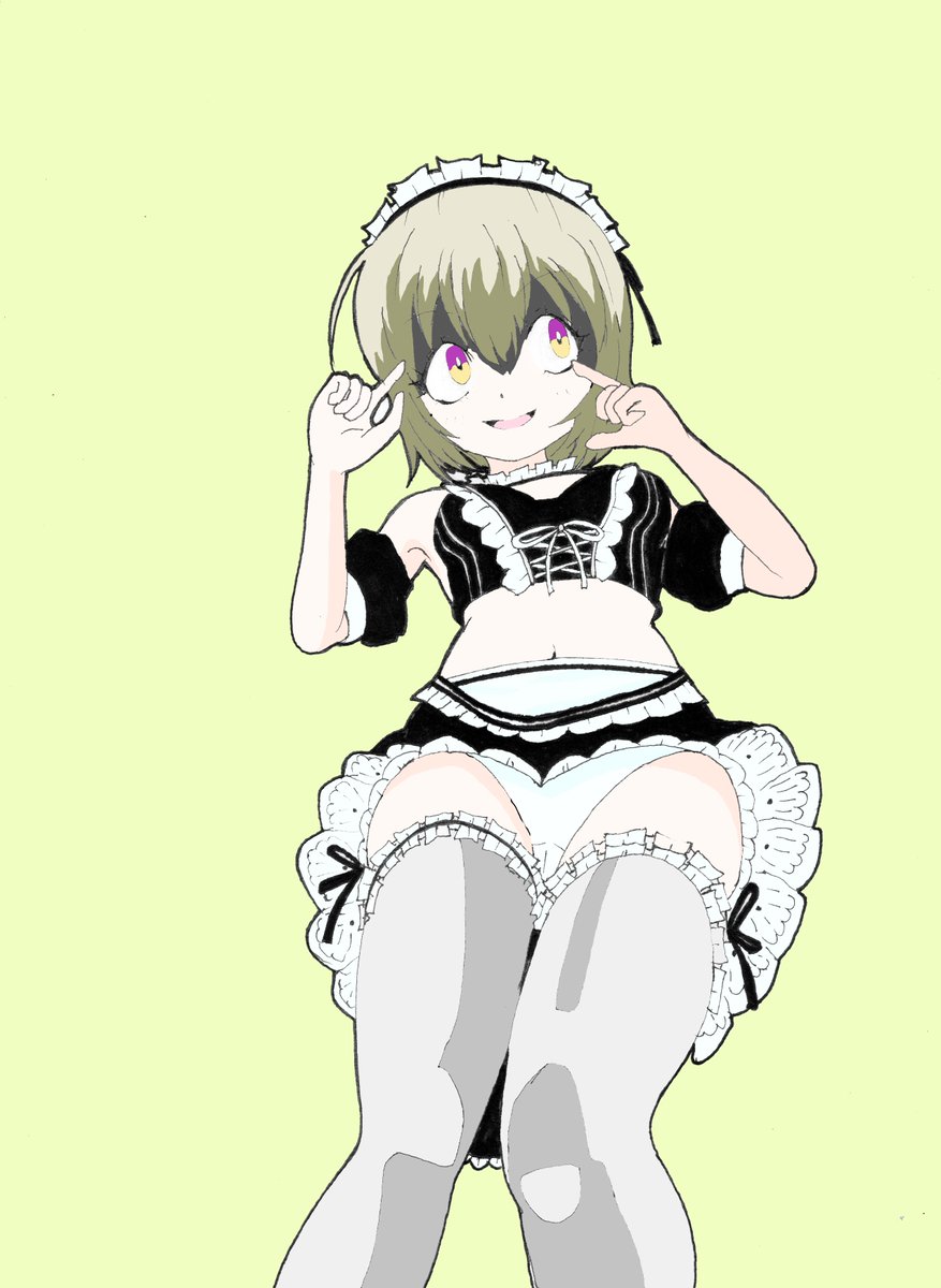 ミニスカメイドぺこら。90分1本勝負でなんとか間に合いました。 #邪神ちゃんドロップキック #jcdk #ぺこら #illustration #illust #日々描く #イラスト練習中 #メイドの日 #メイドの日2023