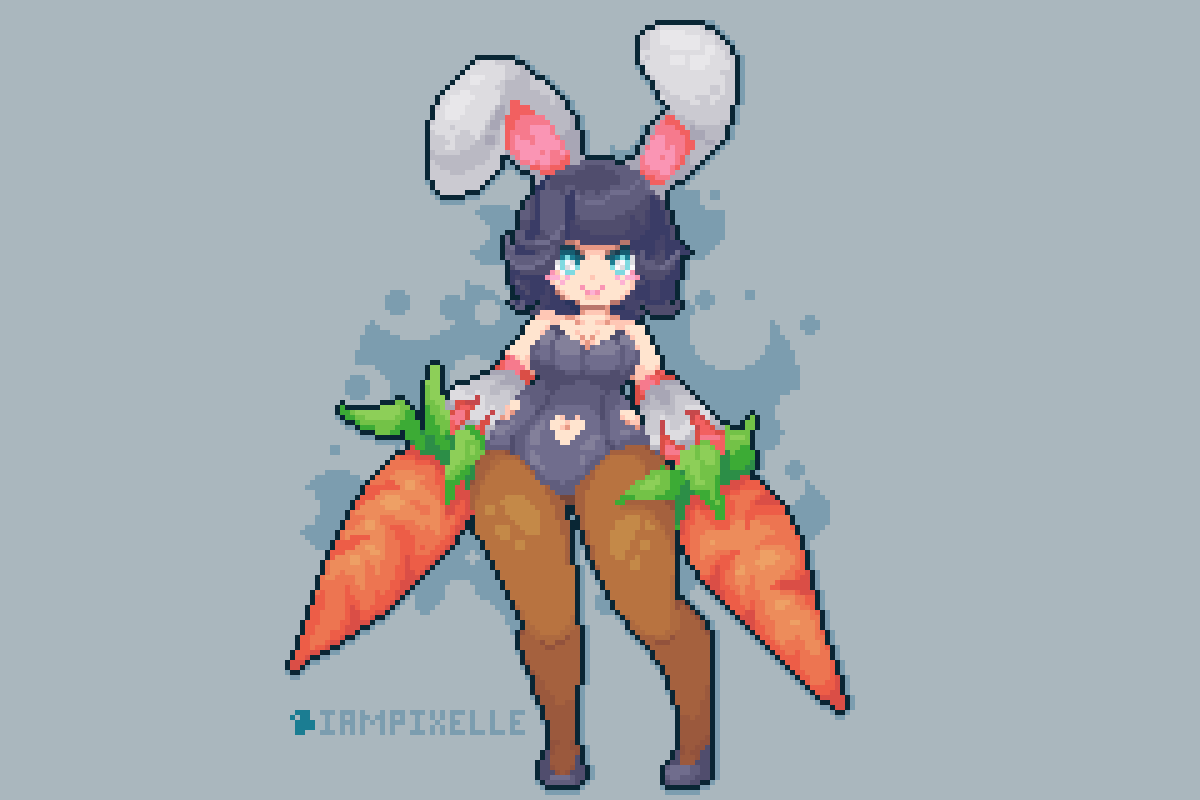 I wanted to be playful so I made a #bunnygirl with dual #carrot weapon~ <3 #pixel_dailies #pixelart #ドット絵 @Pixel_Dailies
