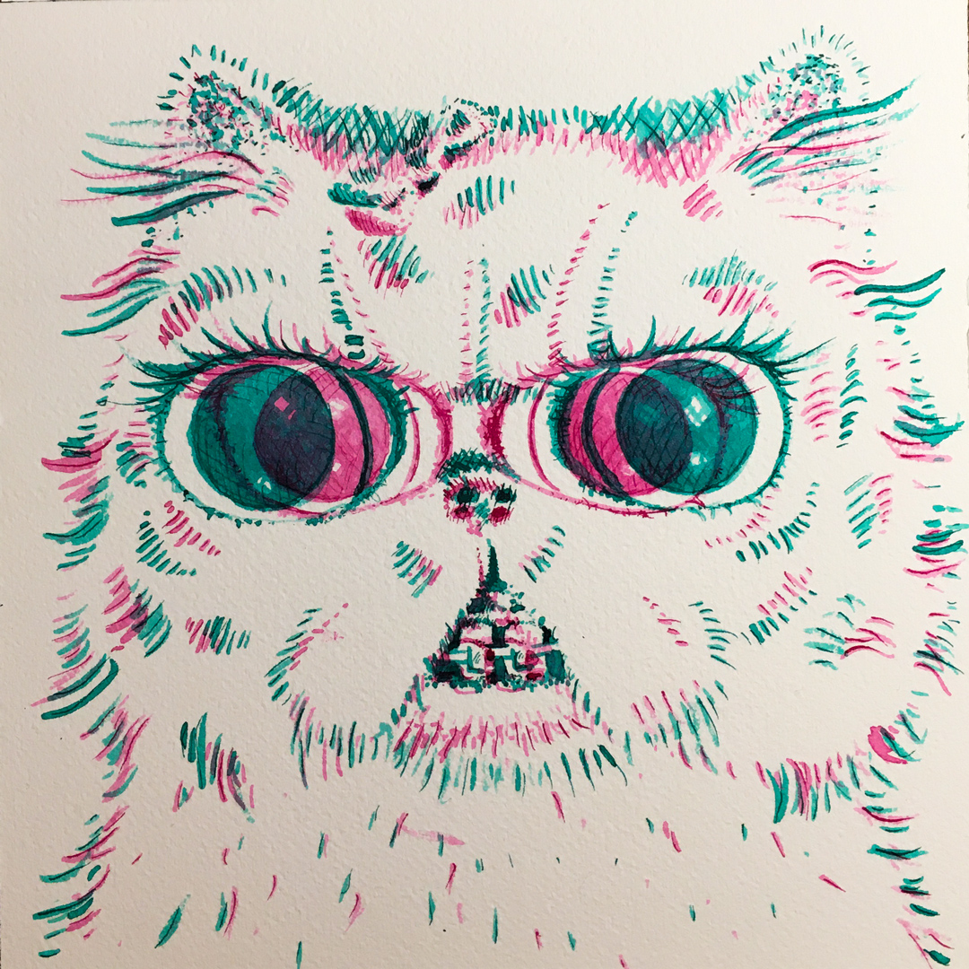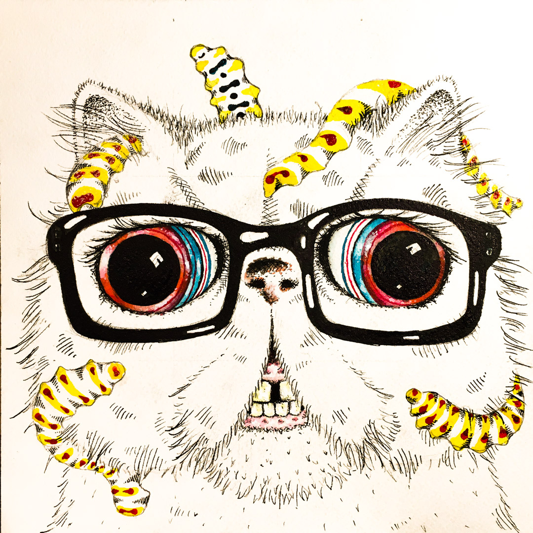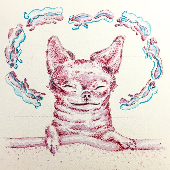 Chihuahua Dreams #inktober2020 #inktober2020day21 mostly India ink. Exploring more of the misprint effect.