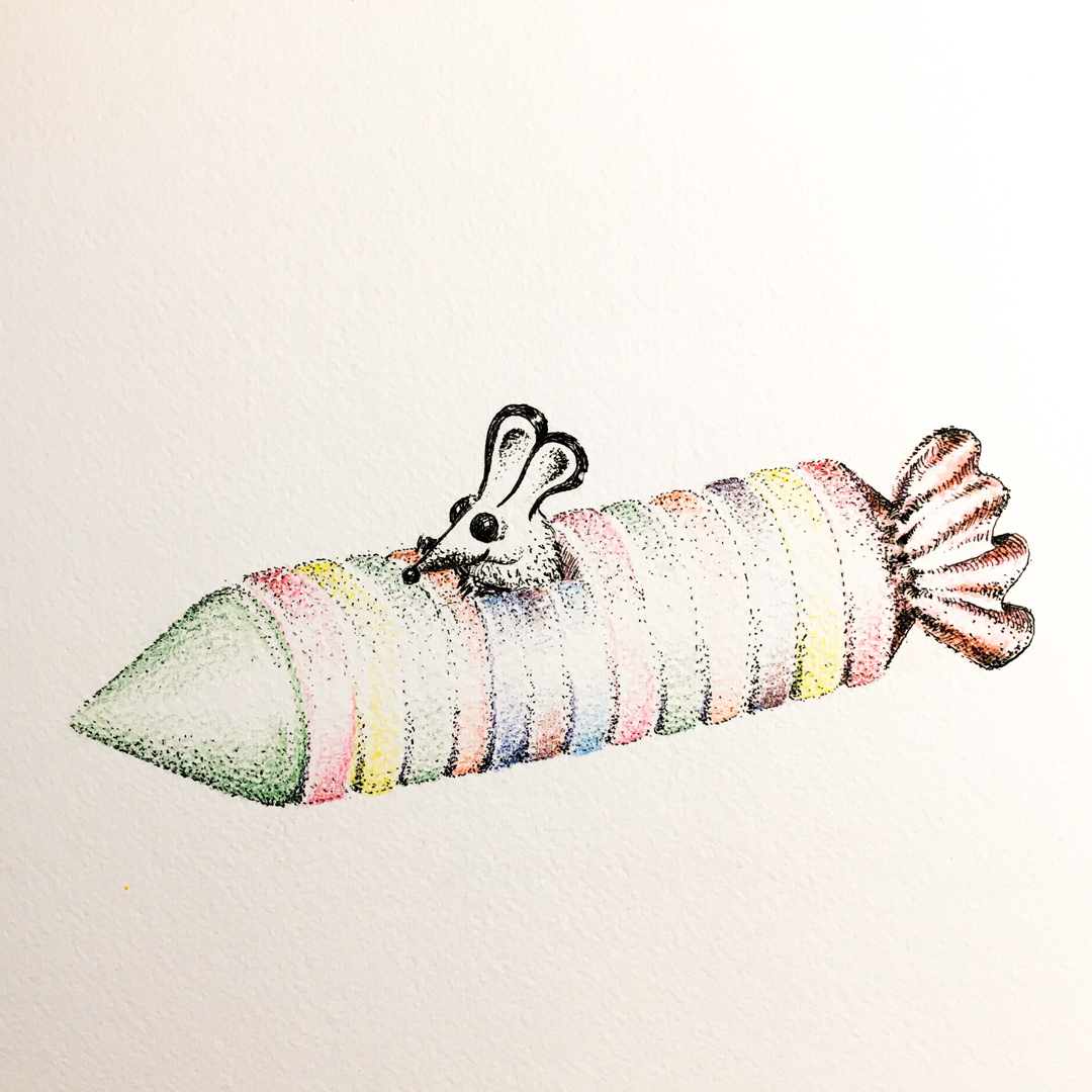 Rockets #inktober2020 #inktober2020day16 Inspired by my absolute favourite tablet type candy that sells in Canada. Believe they're called Smarties in the US. Made with ink+dip pen and watercolour pencils.