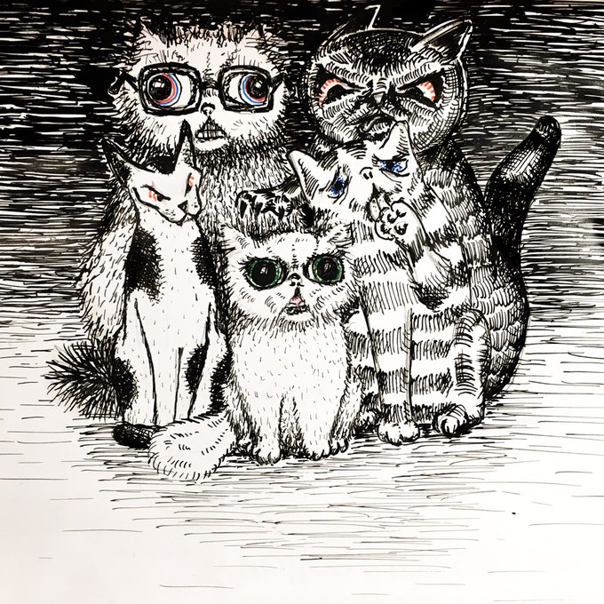 Chef and biggest fans #inktober2020 #inktoberday22 India ink and dip pen. Two things that I absolutely love... animals and sweets :)