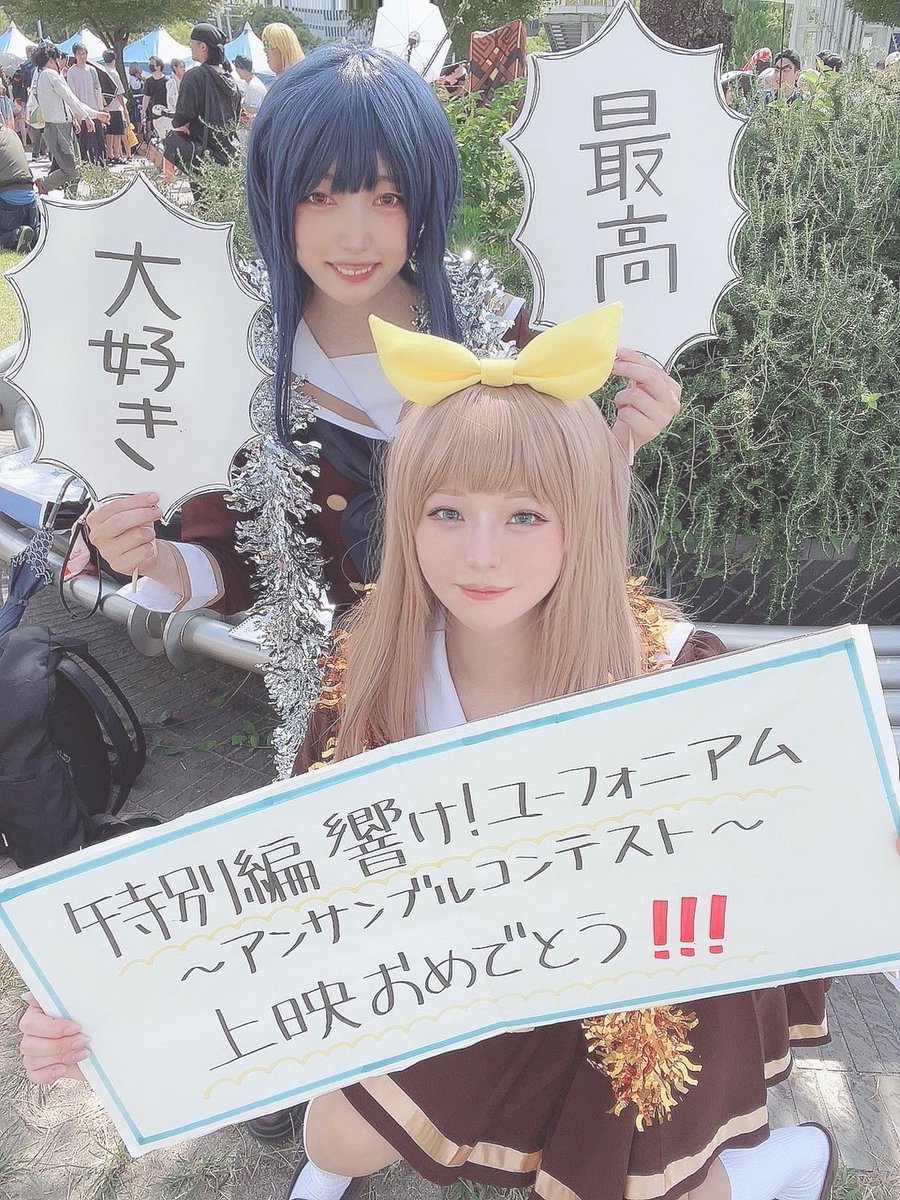 コスサミ2日目お疲れ様でした❣️ 響け!ユーフォニアムの吉川優子と鎧塚みぞれでした🎺🎶 大好きなユーフォのコスできて楽しかった💕 #コスサミ2023