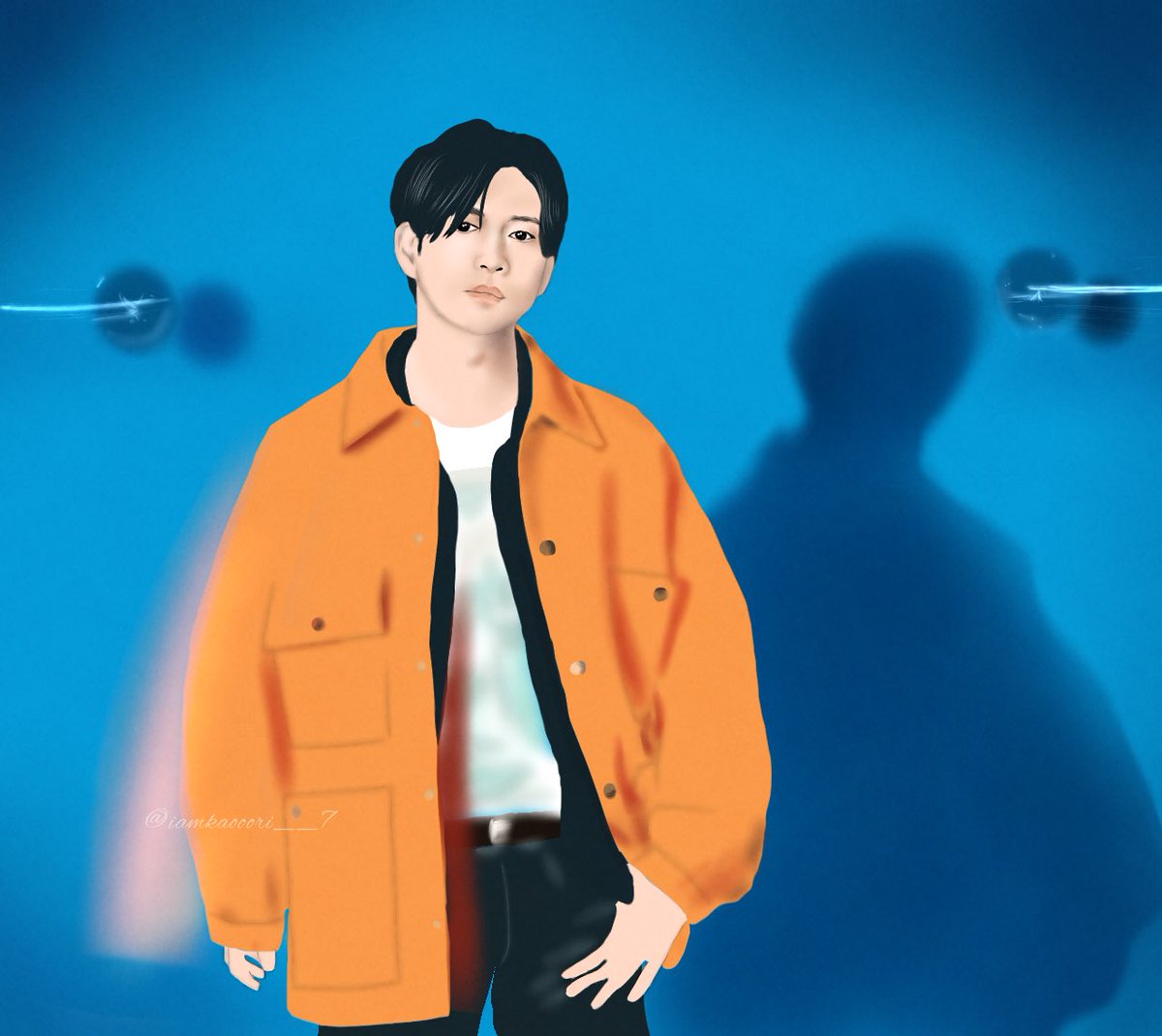 💙🧡newアー写🧡💙 やっと描けた!衣装と背景が反対色でとても好き。ぱっと目を引くしすごく目立つよね🥰 #松下洸平 #イラスト