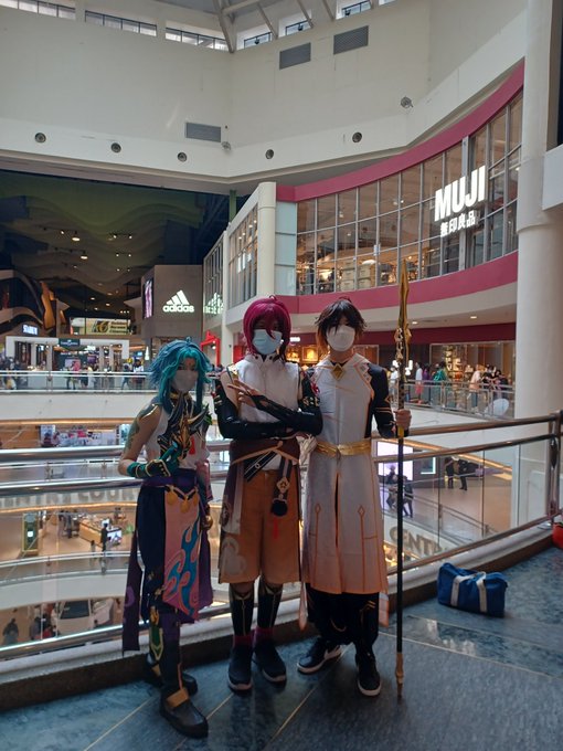 تيڬ كستريا ڤهلاون برسدي اونتوق مڠمبارا Three knights ready for the adventure #cosplay #コスプレ ︙#原神 #GenshinImpact ︰#shikanoinheizou #heizou #鹿野院平蔵 #heizoucosplay : #nijigen2022 #midvalleymegamall
