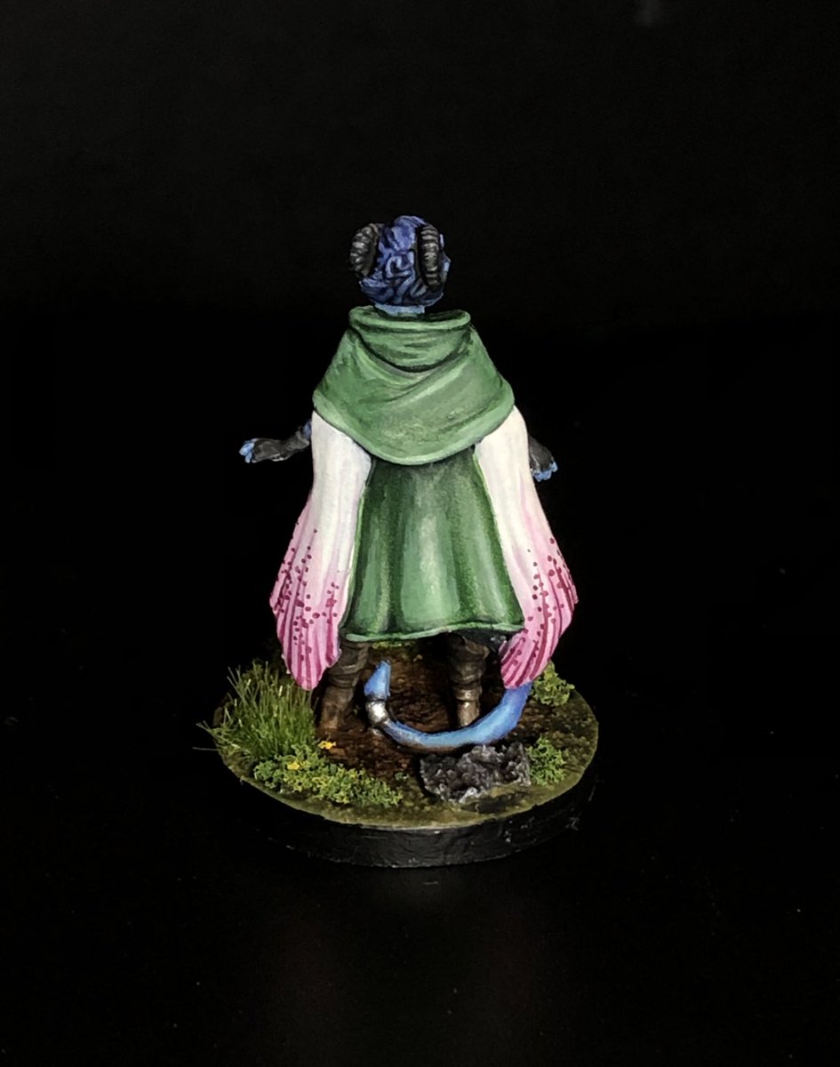 💙Just a little blue Tiefling💙 First done! The beautiful Jester Lavorre 😈 really proud of the long sleeves. Who out of the Mighty Nien should I paint next?! #miniaturepainting #miniature #criticalrole #criticalrolefanart #jester #jesterlavorre