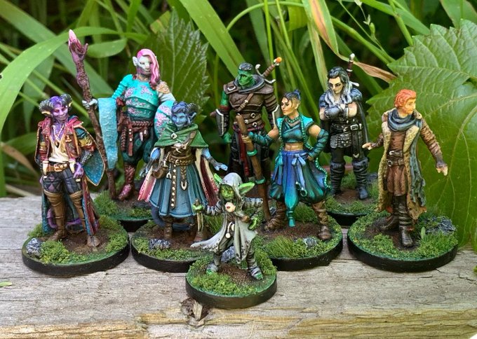 ⚔️ Vox Machina ⚔️ . . . It is done! The whole gang is here! #trinket #vexahlia #vaxildan #pike #scanlan #keyleth #grog #percival #doty #taryon #voxmachina #criticalrole #criticalrolefanart #miniaturepainting @CriticalRole
