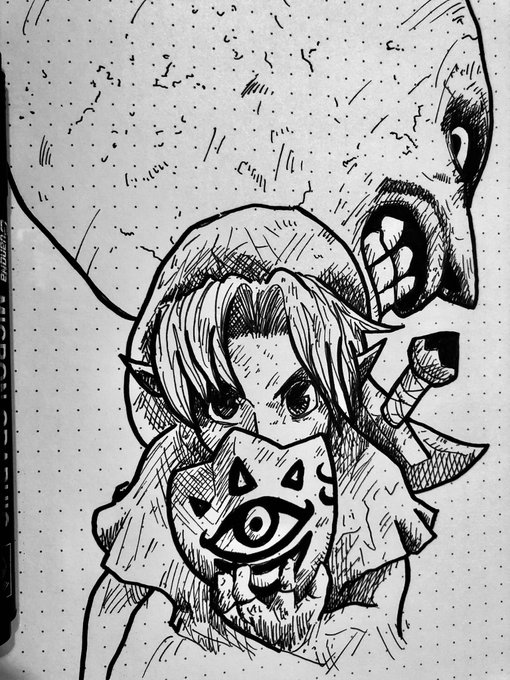 Catch up 3/3 ⏳ Majora’s Mask 🖊 DAY-18 #Inktober #inktober2021day18 #inktober2021 #sketch #sketchbook #moon #link #zelda
