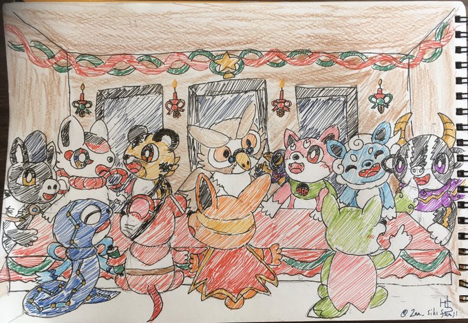14 55 #絵描きさんと繋がりたい #ケモナーさんと繋がりたい 4日?3日?遅れのクリスマスイラスト完成!!です!! レオナルド・ダ・ヴィンチの『最後の晩餐』のパロディーです〜 19/12/28 12:38