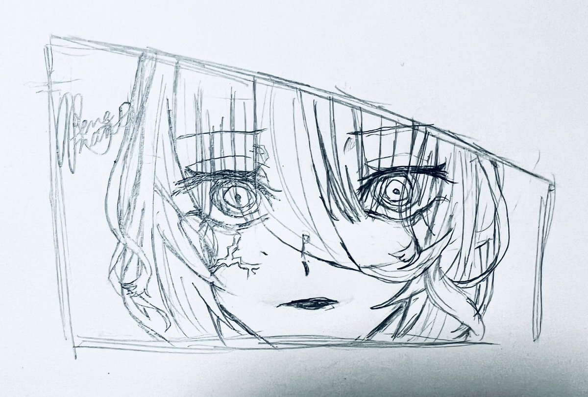 さっき上げた創作の正面 怒り顔って難くね😱 #イラスト #アナログイラスト