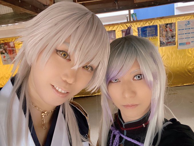 ⚠️Cosplay / 刀剣 相方紅の爆イケ無骨くんとのツーショット✨ 爆イケで2.5mの本体持ってたんですよ。最高だろ 無骨:紅(@uruha_kurenai_c ) 鶴丸(極):昂 @shimogamocoseve #鴨コス #藤森神社