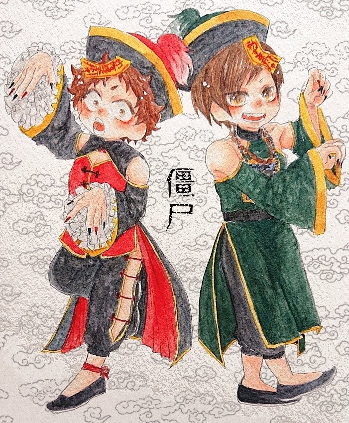 二茂ちゃんテーマ色々(和装応援団、マリン、キョンシー) #今月描いた絵を晒そう