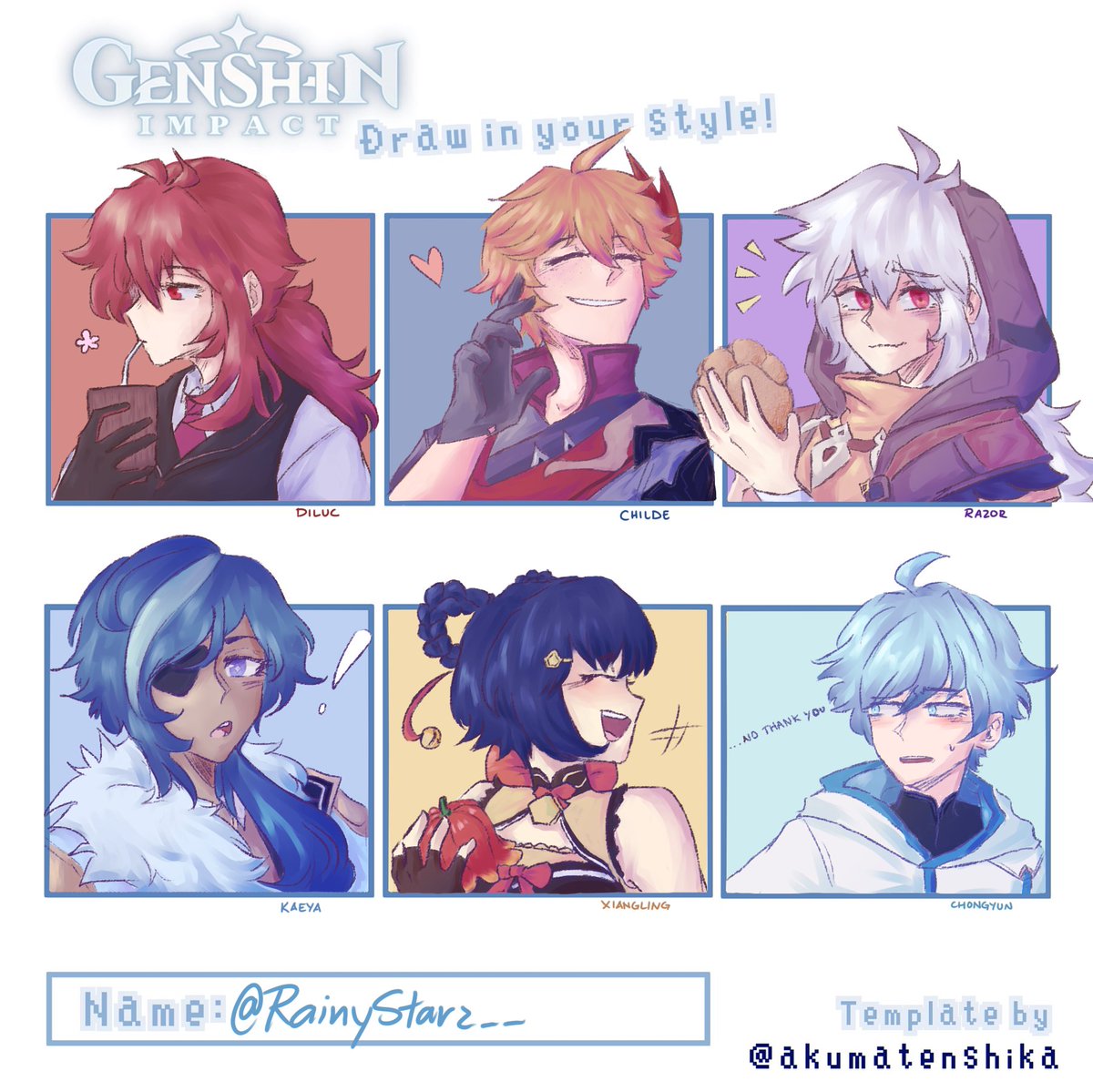 haha drawing- its been a while lol i did get to draw 6 people tho so thos was fun- i might reuse the template to draw other characters; Template by: @AkumaTenshika #原神 #GenshinImpact #GenshinImpactFanart
