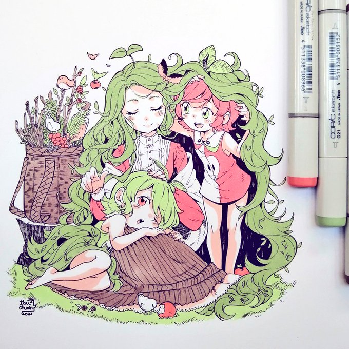 #drawtober2021 Mis oc: Oppi 🌳 Apuru🍏 y Duruce🍎 Son una linda Familia, con niñas revoltosas y Oppi mamá lucho a 💪😤