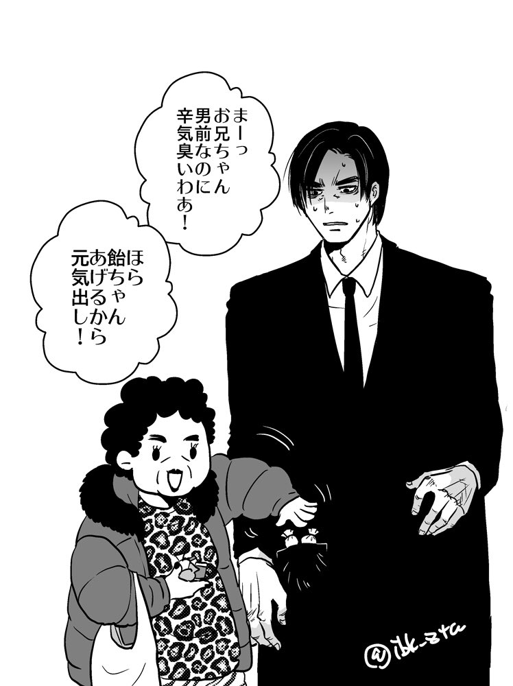 これは大阪のおばちゃんに大量の飴ちゃんをコートのポケットに押し込まれてる(断れなくてなすがままの) ザバ坊ちゃんです🦇