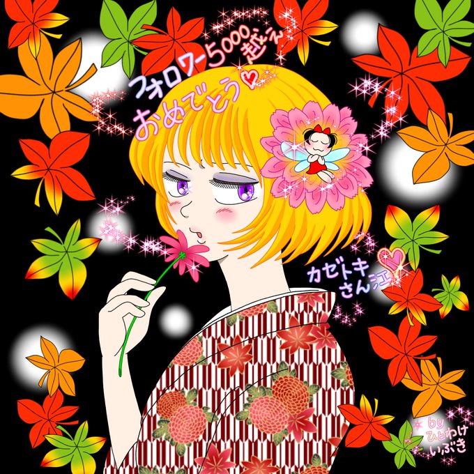 「カゼトキⅡ」さんのファンアート 描いてみました。 私の妖精チャン「ヒラリン」と コラボだよー。(*^◯^*) …余談ですが 沖縄には🍁紅葉ありませんwww ∑(゚Д゚)がーん💧💧💧 秋なのにまだ夏気分のアイランド🏖️