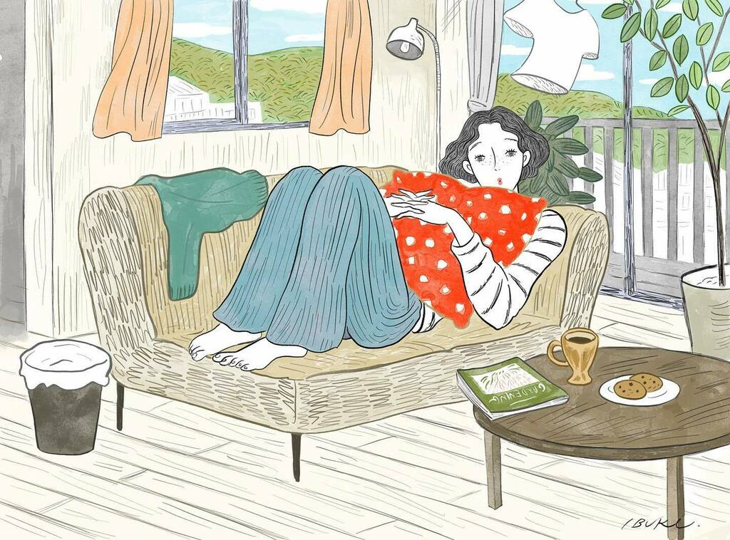 〜生活の絵〜 ソファでくつろぐ人。 #生活の絵 #生活 #イラスト #レトロモダン instagr.am/p/CdFIoXIrE8A/