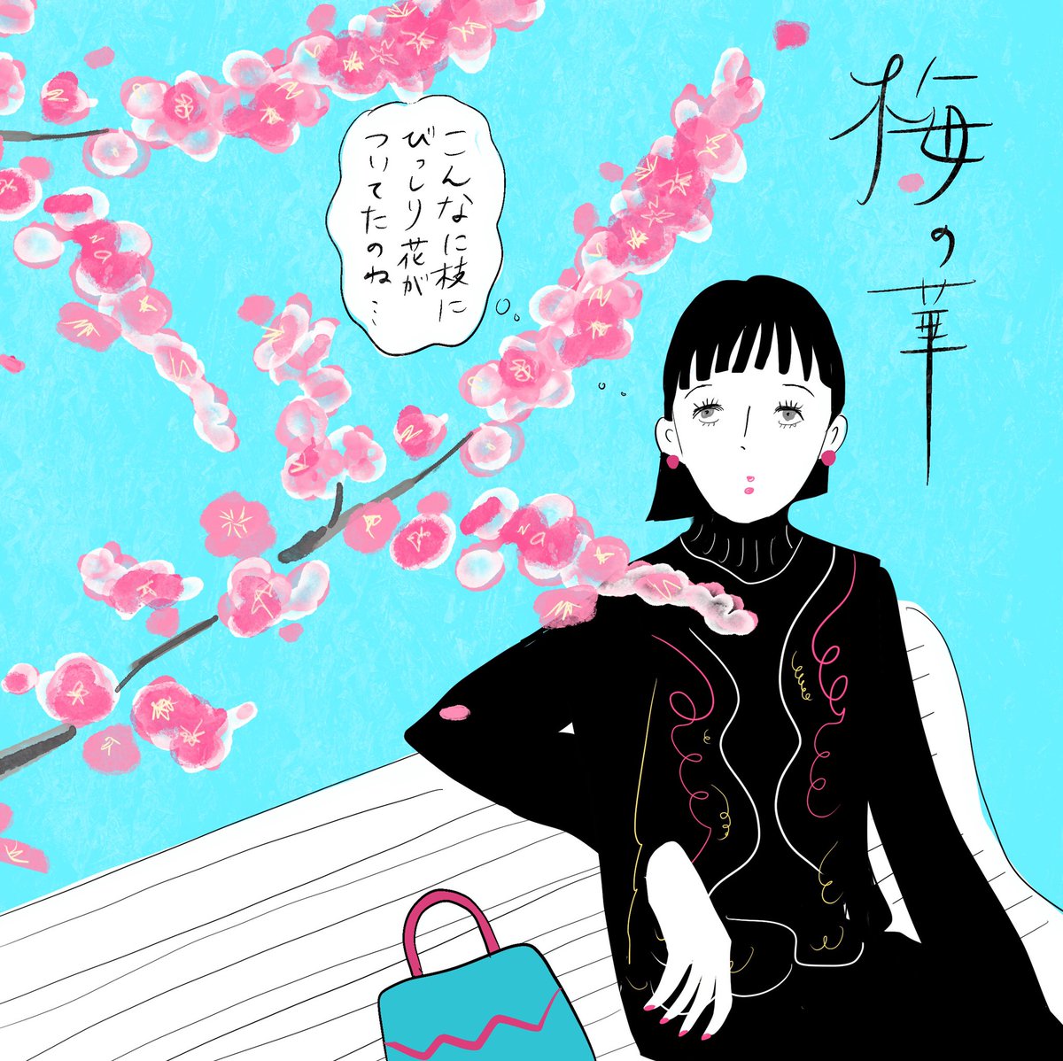 1 16 公園の梅が満開(をもう少し過ぎてる)。この前まで冬だったのに早いなぁ。 こんなに枝にびっしり花がついてたっけと改めて思った春の日🌸 #イラスト #イラストレーター #レトロモダン #レトロ #花 23/03/19 23:20