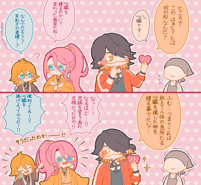 55 217 最近の虎徹たち何故か出陣前に指ハートとか頬ハートとかしてくれるんだけどなんでだろ〜〜〜〜〜〜の絵(遅刻バレンタイン) 23/02/16 20:29