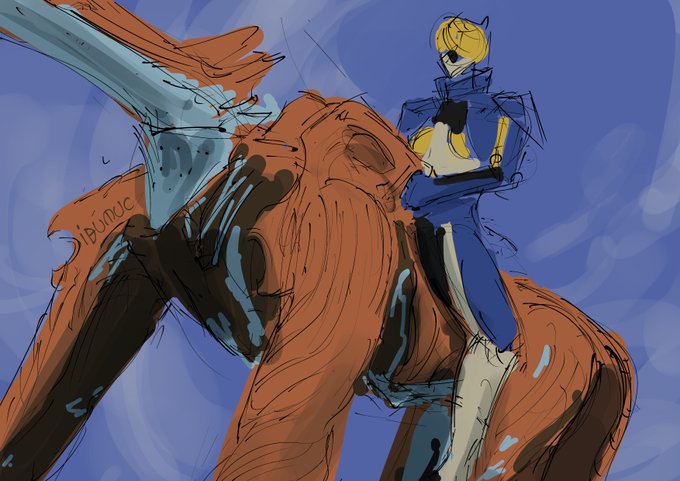 18 126 I saw Mesa on a horse, so I had to draw it again. #warframefanart 23/04/13 22:34