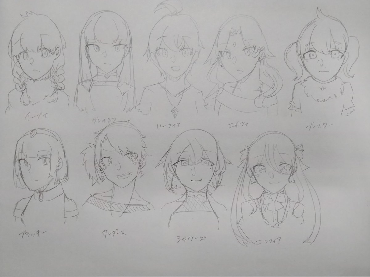 昔描いたブイズ擬人化を今の絵で描いたら思いの外かわいい件